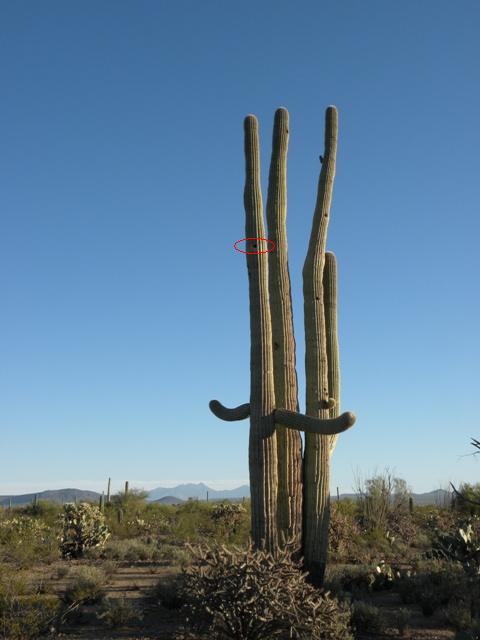 If you look for the red circle on the left side of this big cactus you'll see the home of...