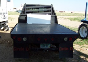 A farm and ranch store nearby had the answer for me. In their store I found a 36 gallon auxiliary diesel fuel tank for a bit over two hundred bucks. I went with a smaller auxiliary fuel tank (up to 105 gal is avail.) because diesel is heavy and combined with the 35 gal. factory tank, it gives me all the capacity I really need.